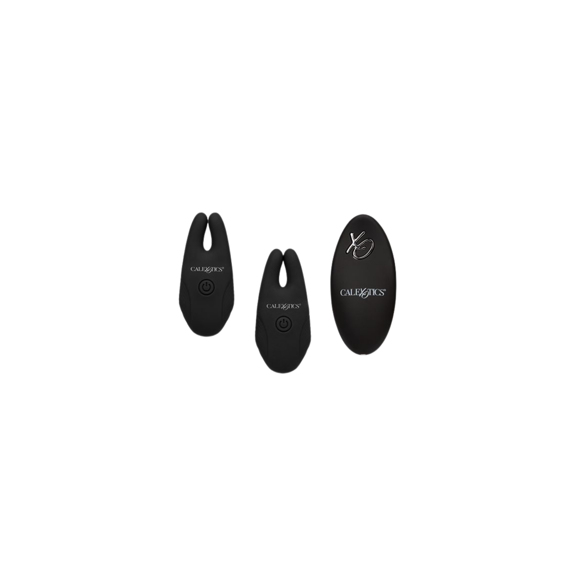 Blur the borders between pleasure and pain even further with the game-changing Silicone Remote Nipple Clamps. This daring designer nipple clamp set features 12 independently controlled functions of vibration, remote control and USB rechargeable battery. Clamp these multi-use teasers to your body and enjoy every rush of stimulation as you flicker through the powerful functions of vibration as the touch of the remote. As the tension tightens, the tingles intensify with every touch of the button for the ultimate in nipple stimulation toys. The discreet mini remote control makes it easy to enjoy adventurous foreplay. Once fully charged, the versatile teasers have an orgasmic controller range of up to 32.75 ft (10 m) away! A single touch button controls up to 40 minutes of vibrating pleasure. Recharge your pleasure in only 1 hour with the dual charging USB cable into the self-sealing charging port. Take you pleasure to go with the travel lock feature, simply hold the power button for 3 seconds to turn on/off.