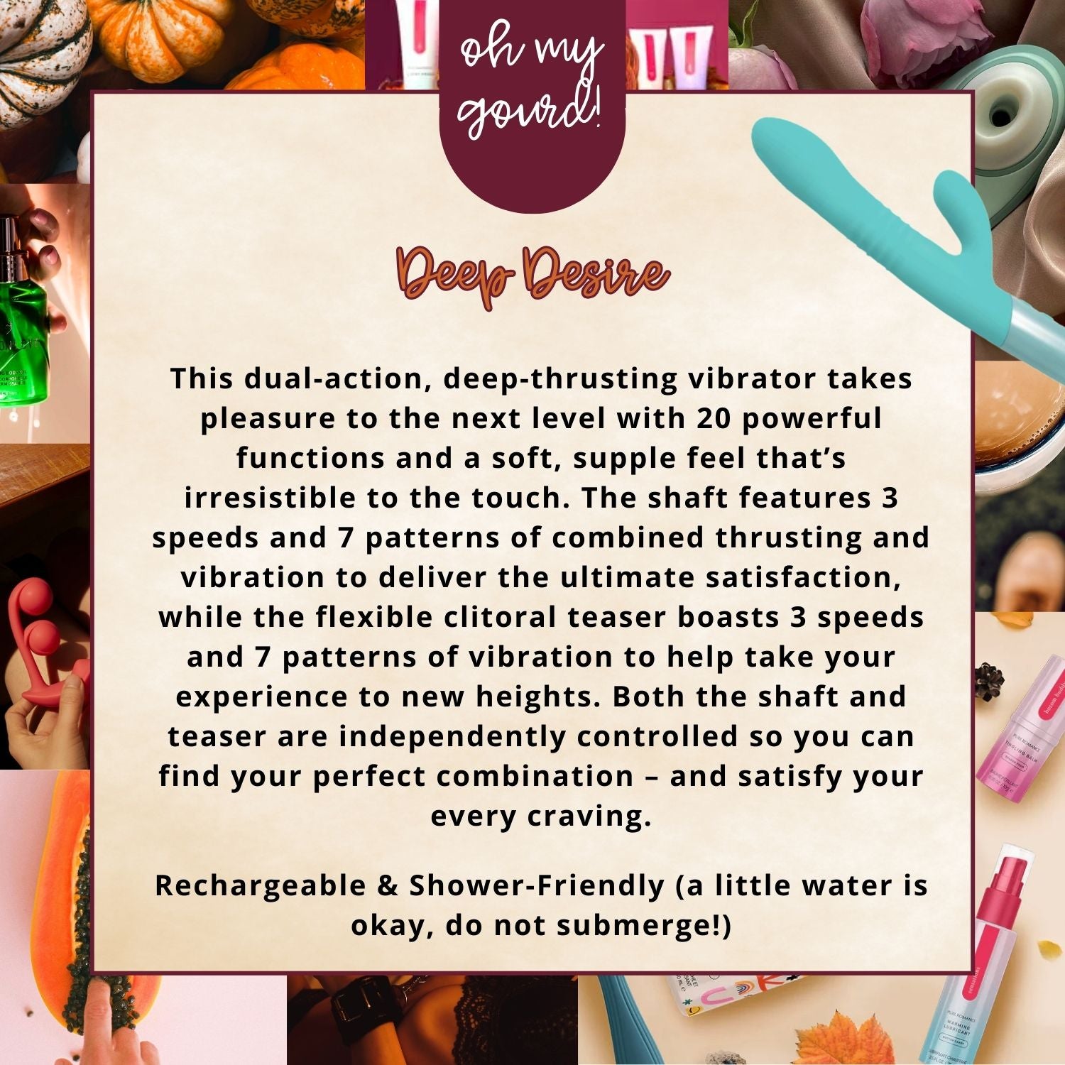 This dual-action, deep-thrusting vibrator takes pleasure to the next level with 20 powerful functions and a soft, supple feel that’s irresistible to the touch. The shaft features 3 speeds and 7 patterns of combined thrusting and vibration to deliver the ultimate satisfaction, while the flexible clitoral teaser boasts 3 speeds and 7 patterns of vibration to help take your experience to new heights. Both the shaft and teaser are independently controlled so you can find your perfect combination – and satisfy your every craving.