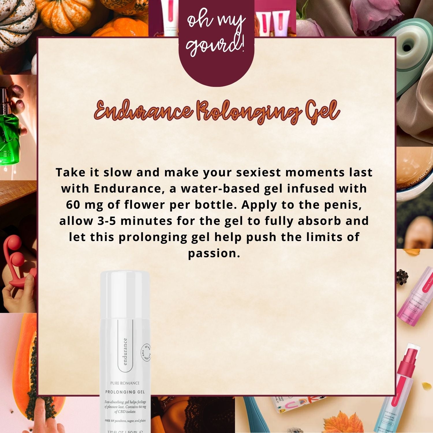 Take it slow and make your sexiest moments last with Endurance, a water-based gel infused with 60 mg infused per bottle. Apply to the penis and let this prolonging gel help push the limits of passion.