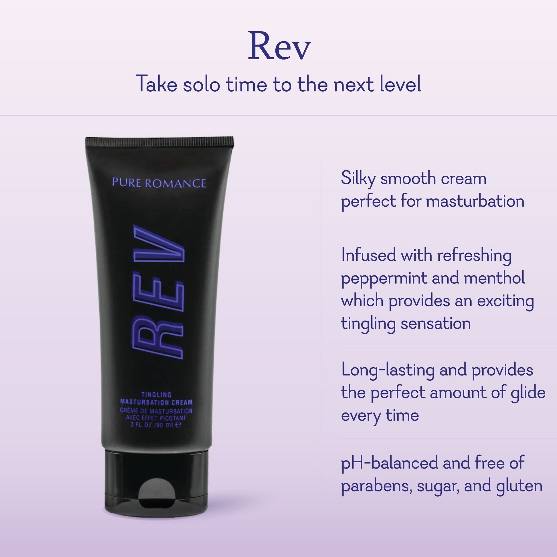 Start your engine! Rev takes "me time" to a whole new level with a smooth, enhanced formula that provides long-lasting glide and a tingling sensation. Smooth it on your penis (or your partner's!) and get ready for sensual stimulation made to satisfy. Whether you want to take it slow or you've got the need for speed, grab this tingling masturbation cream and Rev it up!