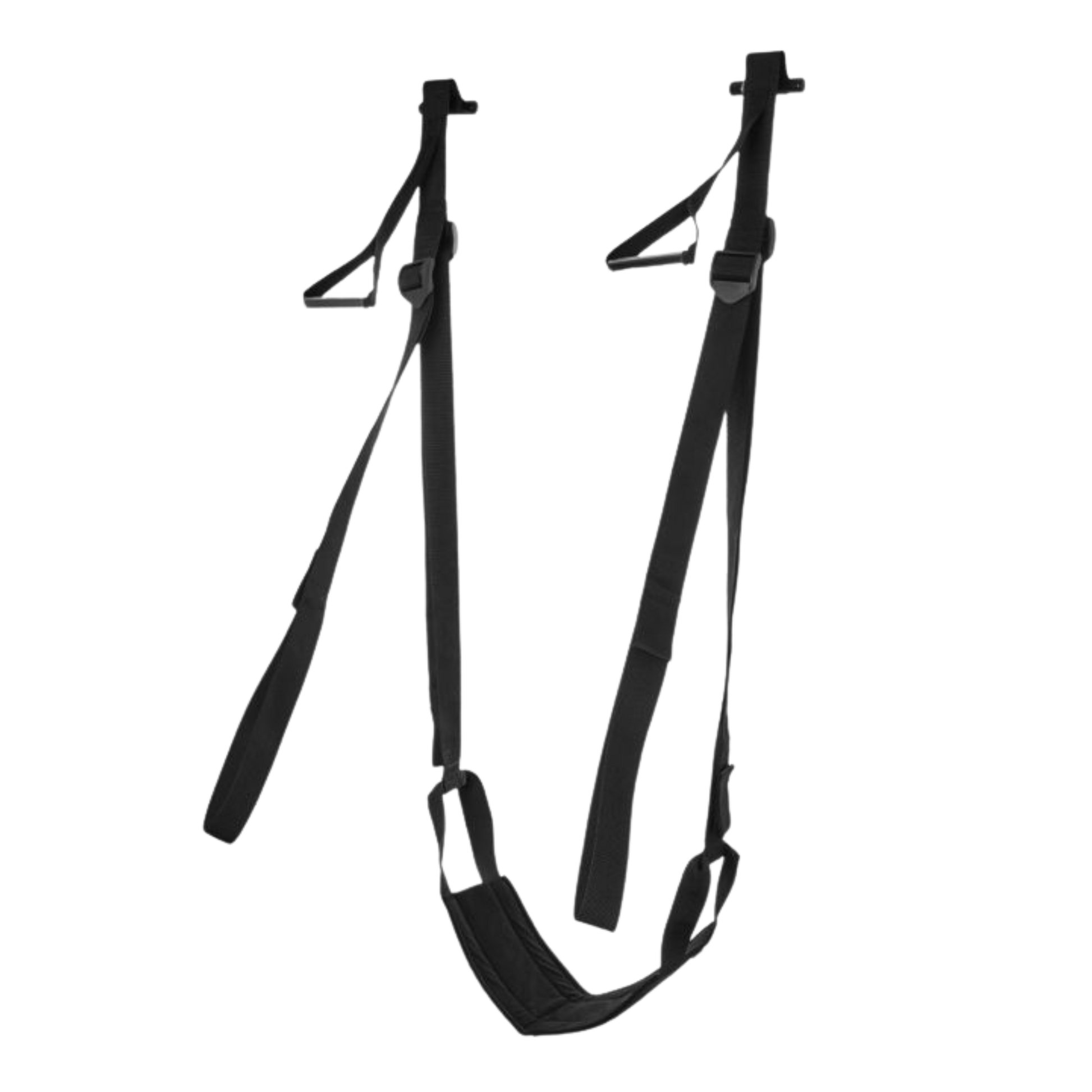 Strong, durable, and highly adjustable for your most creative sexual endeavors! With the Door Jam Sex Sling, Sportsheets has designed a solution that empowers couples to experiment with exciting new positions without worries about stamina, awkwardness, or injuries. Just secure the sling over your door by closing it on the dowels and adjust each of the straps to the perfect lengths for your bodies and chosen position. The footrests, hand straps, and a padded seat ensure comfort during your most vigorous carnal explorations. When you're both satisfied, this sling is easy to take down and store away for next time! Features: Easy to set up and take down Adjustable for infinite positions Supports up to 350 pounds Machine washable Limited Lifetime Warranty In The Box: Door Jam Sex Sling Materials: 50% polypropylene, 15% polyester, 12% polyurethane, 8% ABS plastic, 5% galvanized metal, 5% TOTM plastic, 5% phthalate-free PVC
